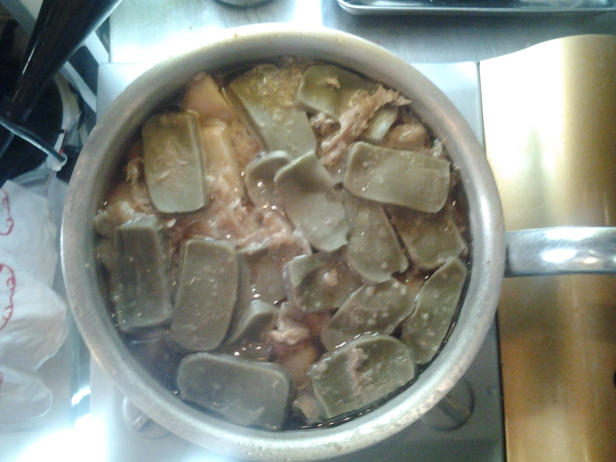 里芋、豚肉、銀杏、竹の子、よもぎの生麩の炊いたものです